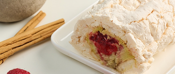 Рулет из воздушного хрустящего безе с прослойкой из нежного фисташкового крема и протертой малины. Натуральный продукт. Выпускается весом 360 г и 200 г.